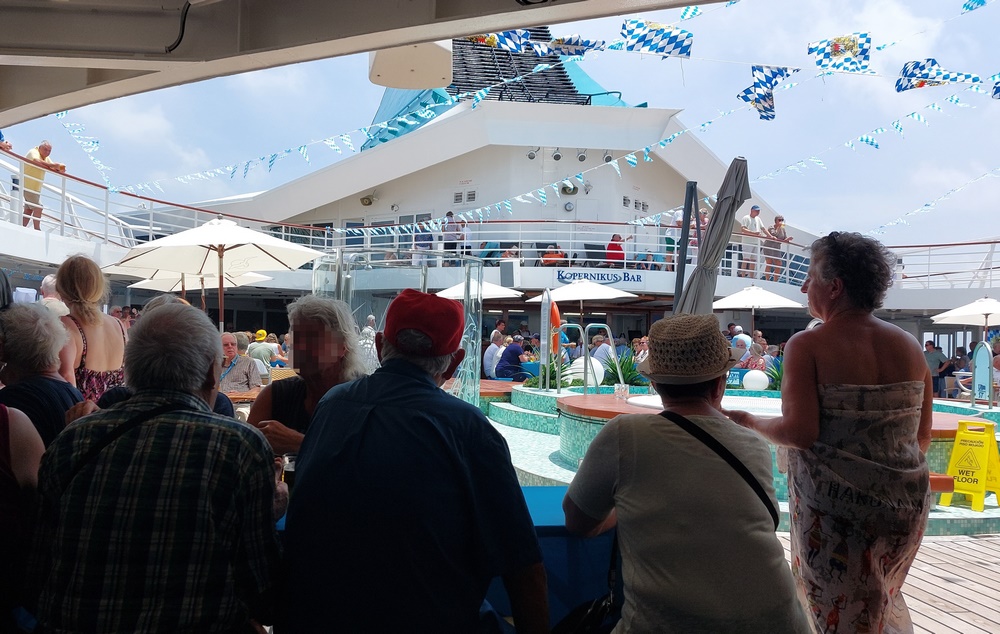 Heute war der letzte Seetag vor Ende des Reiseabschnitts und daher stand von 11 -12 Uhr der allseits beliebte Stadl Frühschoppen auf dem Programm.