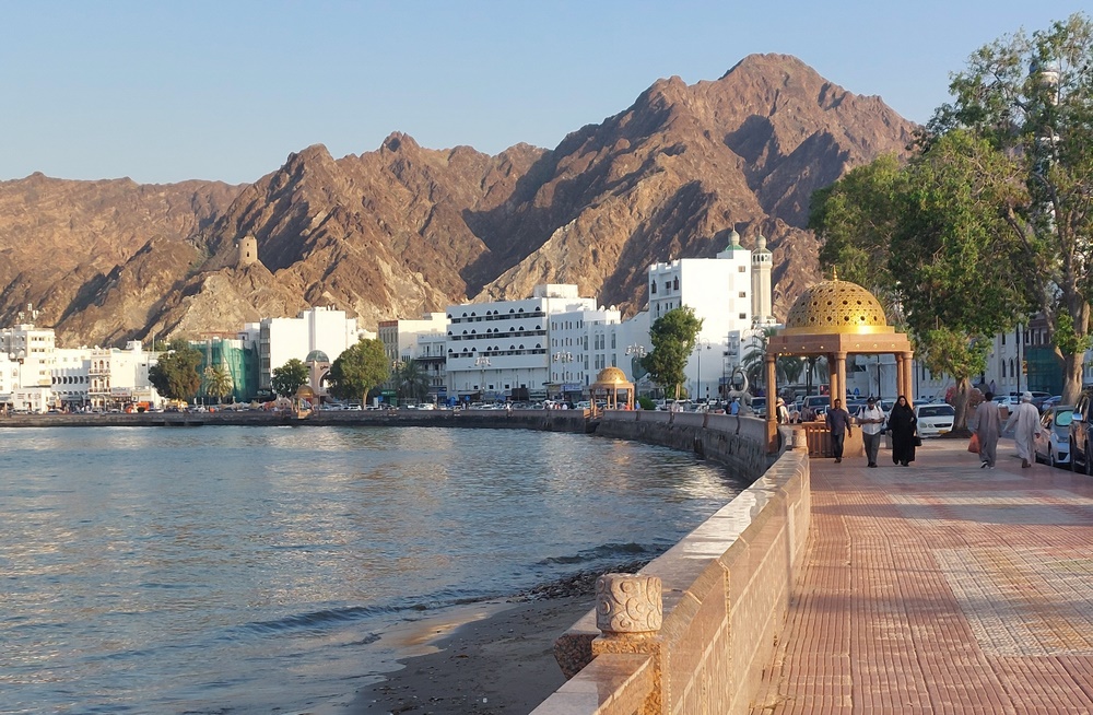 Wir gingen allerdings erst nach der Kaffeestunde gegen 17:00 Uhr von Bord, da wir nur einen Spaziergang an der Corniche, der Uferpromenade von Muscat, machen wollten und dazu noch kurz einen Abstecher in den Souk geplant hatten.