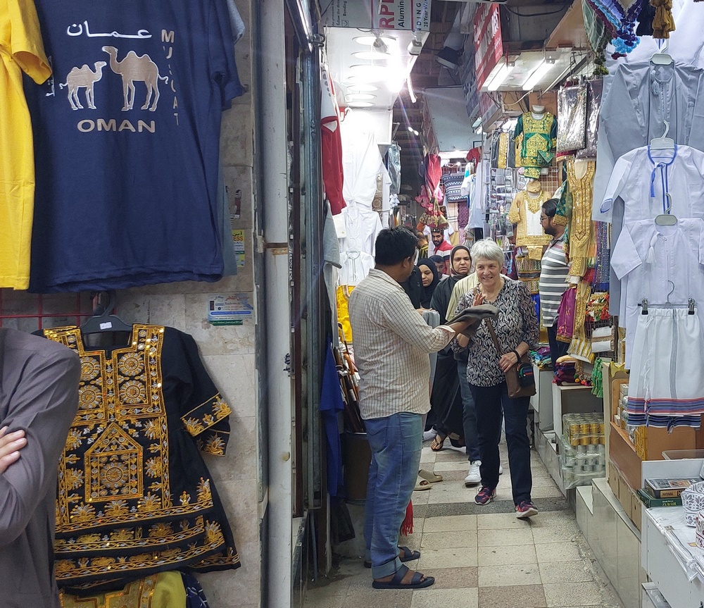 Dort gelangt man von der Anlegestelle fast zwangsläufig in den Souk, wo den Touristen Gewürze, Textilien, Andenken aller Art und Goldschmuck angeboten werden. Einheimische sieht man hier weniger einkaufen.