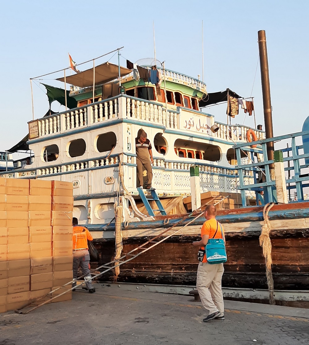 Wir sprachen mit einem Dhau-Besitzer, der uns erzählte, dass er Waren in den Iran bringt und von dort meist landwirtschaftliche Produkte nach Dubai importiert.