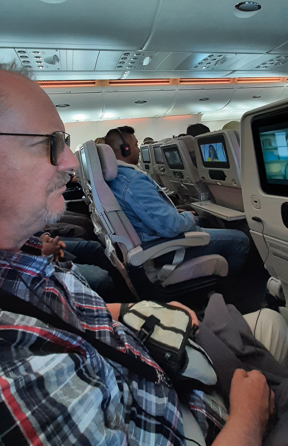 Aber die Sitze im A380 der Fluggesellschaft Emirates waren nicht so schmal und eng, wie zum Beispiel bei Condor. Und das Entertainmentprogramm am Sitzplatz ließ keine Wünsche offen. Zum Musikhören standen hunderte Playlists zur Verfügung und fast genau so viele Filme, etwa 30 davon in deutscher Sprache. Ich habe mir den Film „Oppenheimer“ angesehen, ein 3-Stunden-Mammutwerk. Damit hatte man schon den halben Flug bewältigt.