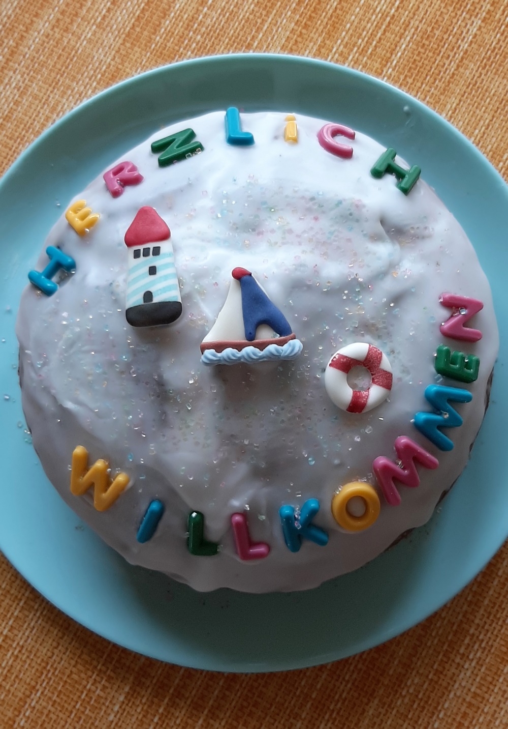 Überraschung! Unsere Haushaltshilfe kommt einmal die Woche, auch wenn wir länger verreist sind. Sie hat uns einen Willkommenskuchen gebacken.