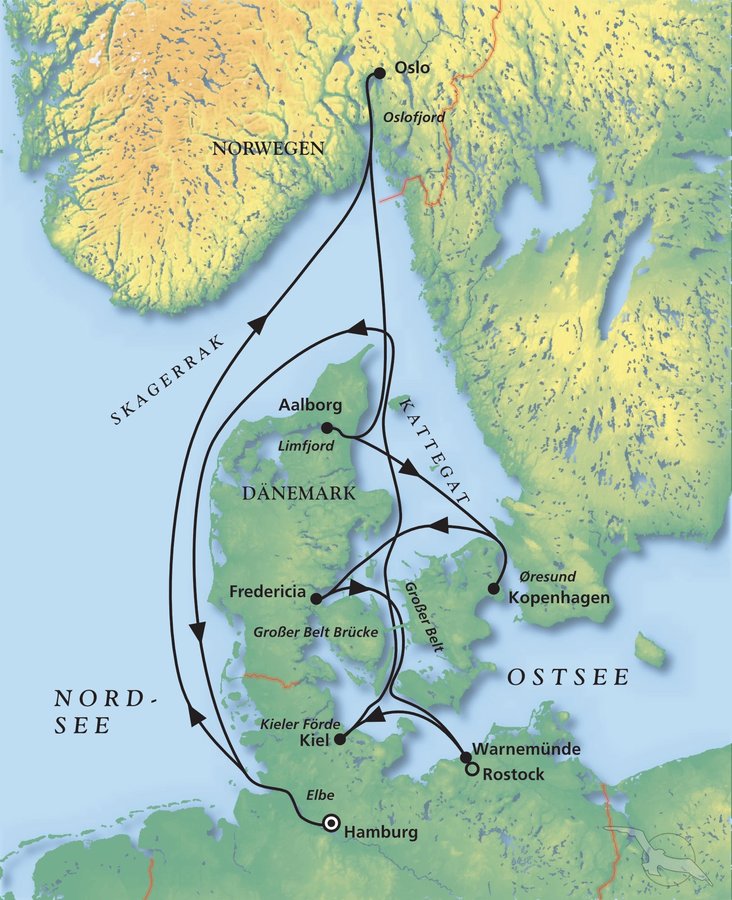 Das Einchecken gegen 17 Uhr an Bord ging rasch und problemlos. Um 18 Uhr fand die obligatorische Rettungsübung statt und eine Stunde später hieß es „Leinen los“ mit Kurs auf Oslo in Norwegen.