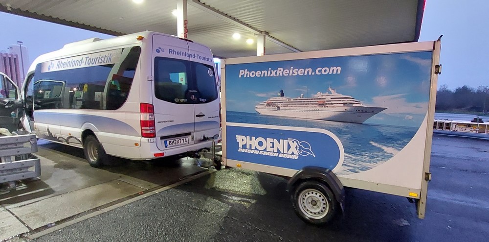 Die Kreuzfahrt startet in Hamburg. Um dorthin zu kommen haben wir auch die Anreise mit dem Bus über Phoenix gebucht. Zwar ist die Bahn in der Regel schneller und mit Spartarif sogar billiger, aber wenn es etwa zu „Störungen im Betriebsablauf“ kommt, womit die Bahn mehrstündige Verspätungen und Zugausfälle begründet, ist unser Dampfer weg.