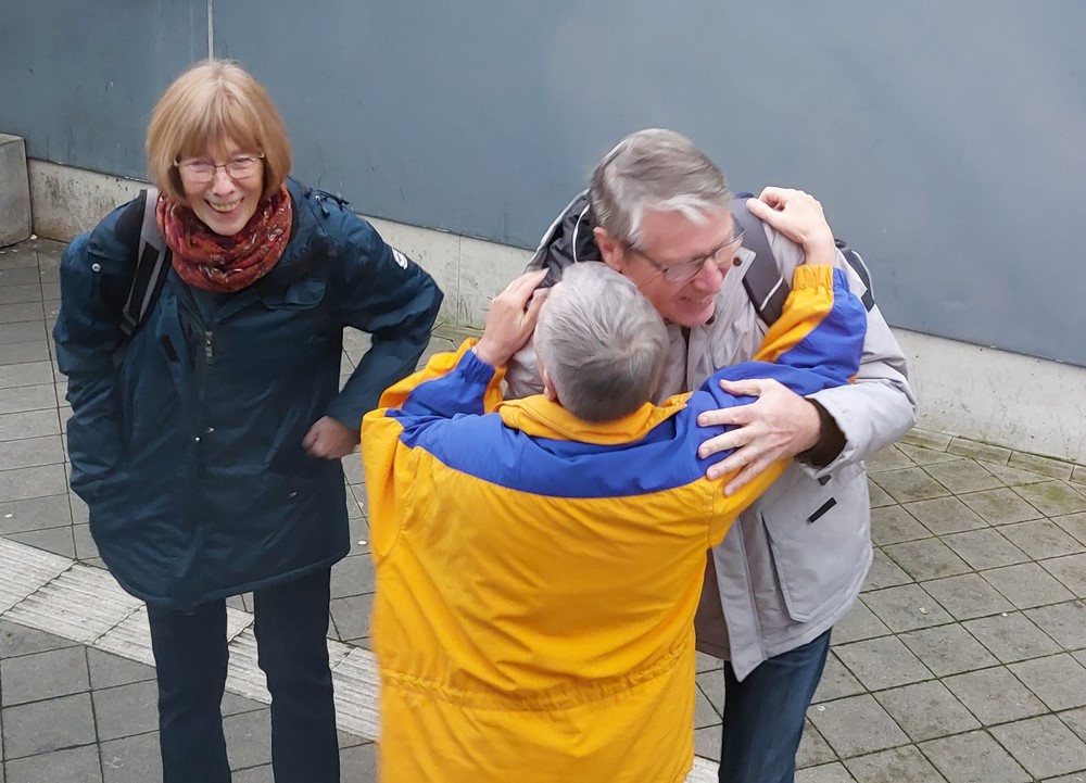 Wir konnten noch unsere Freunde Elisabeth und Clemens, die heute früh in Hamburg von Bord der ARTANIA gegangen sind und mit einem Phoenix-Bus von dort nach Hannover verfrachtet wurden, am ZOB kurz treffen, bevor wir in unseren Bus nach Hamburg umsteigen konnten.