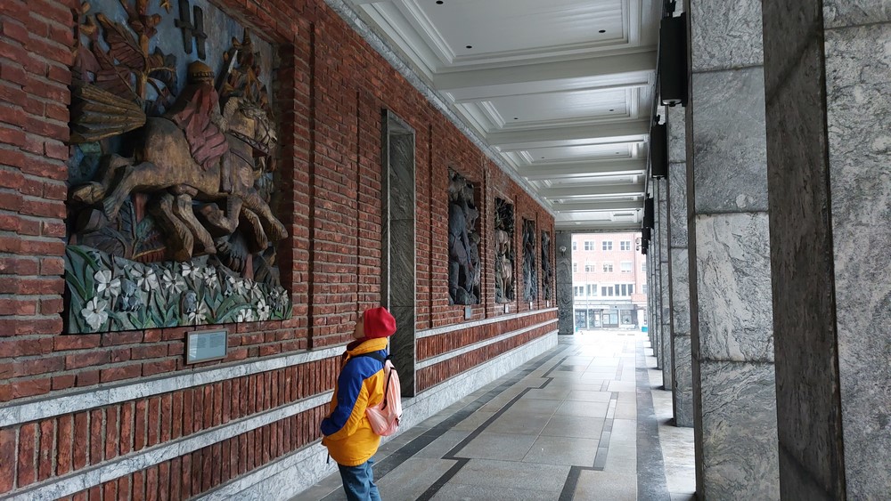 Das Rathaus, eine DER Sehenswürdigkeiten von Oslo, besichtigten wir nur von außen. Den sehenswerten Innenräumen mit den dort ausgestellten Kunstwerken statten wir keinen Besuch ab, zum einen, weil wir vor Jahren schon mal hier waren und vor allem, weil es eine lange Schlange bei der Einlasskontrolle gab.
