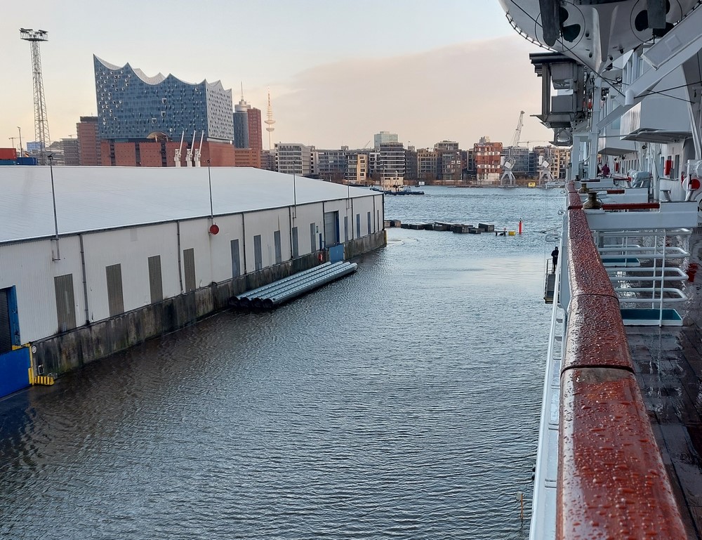So musste Doris allein an der Reling stehen, um sich aus Hamburg zu verabschieden.