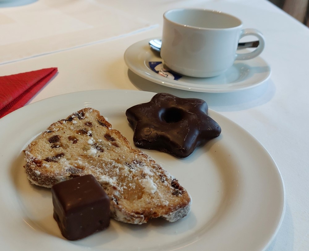 Eine positive Überraschung gab es beim Nachmittagskaffee. Dominosteine, soviel wie das Herz begehrt und ohne das eine Zuteilung durch eine Servicekraft erfolgt, sondern ausschließlich in Selbstbedienung.