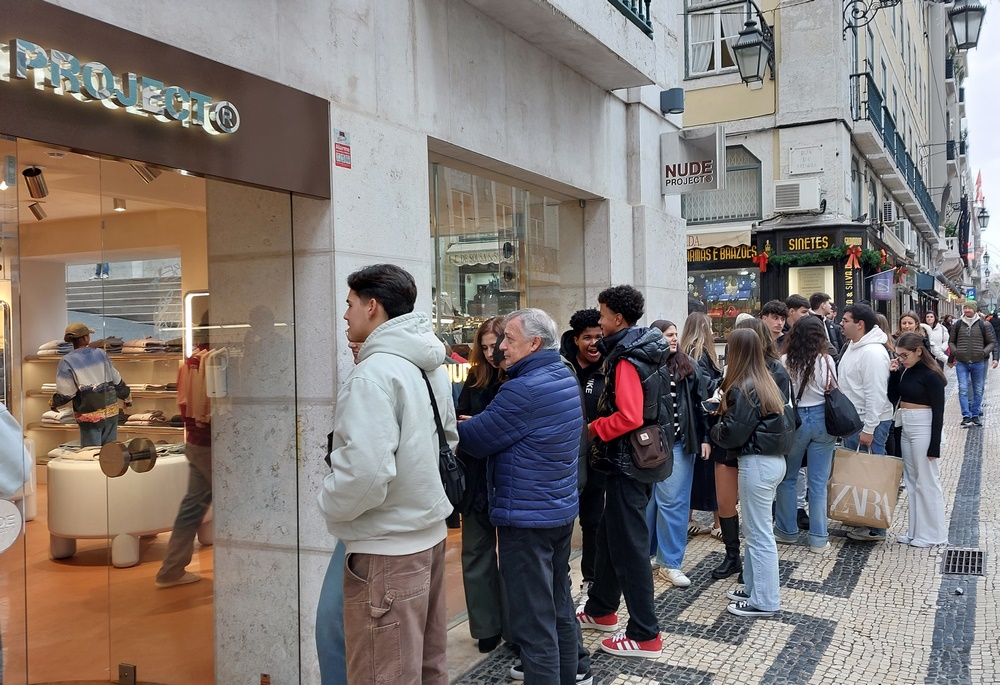 Auf unserem weiteren Weg betrachteten wir staunend eine Menge junger Leute, die vor einem kleinen Bekleidungsgeschäft Schlange standen und darauf warteten, tröpfchenweise hereingelassen zu werden.