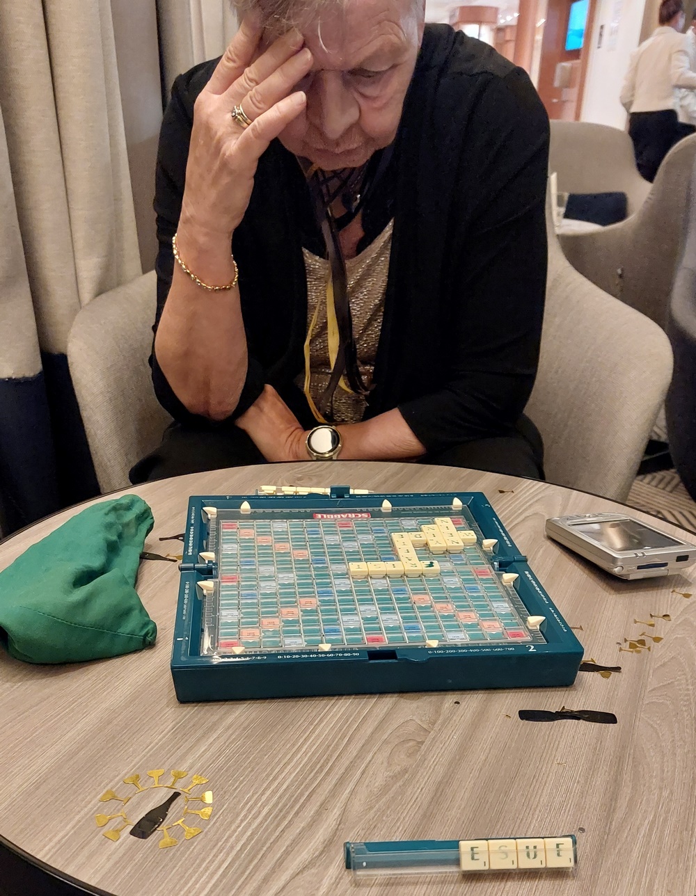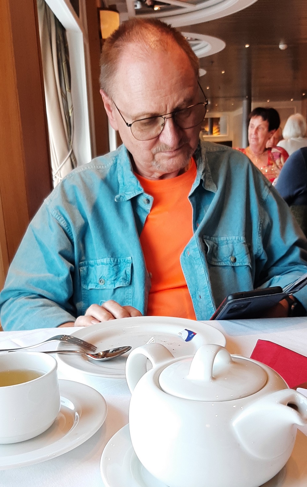 Jetzt hatte sich ein Paar an einem dieser Tisch sogar erdreistet, die Tischdecke wieder wegzunehmen und neben hinzulegen. Oh, Oh, das gab ganz furchtbare Schimpfe von der Phoenix-Reiseleiterin, die für die Ausrichtung des Skatturniers verantwortlich zeichnete. Dass sie sich dabei gewaltig im Ton den Gästen gegenüber vergriffen hat, müsste ihr mal jemand sagen. Und würde es nicht genügen, die Skattische erst in der Mittagspause gegen 13:00 Uhr „einzudecken“ und nicht schon morgens vor dem Frühstück?