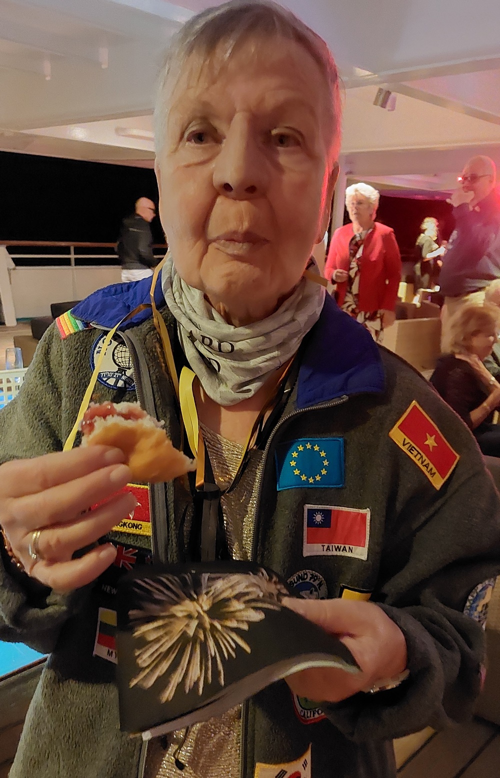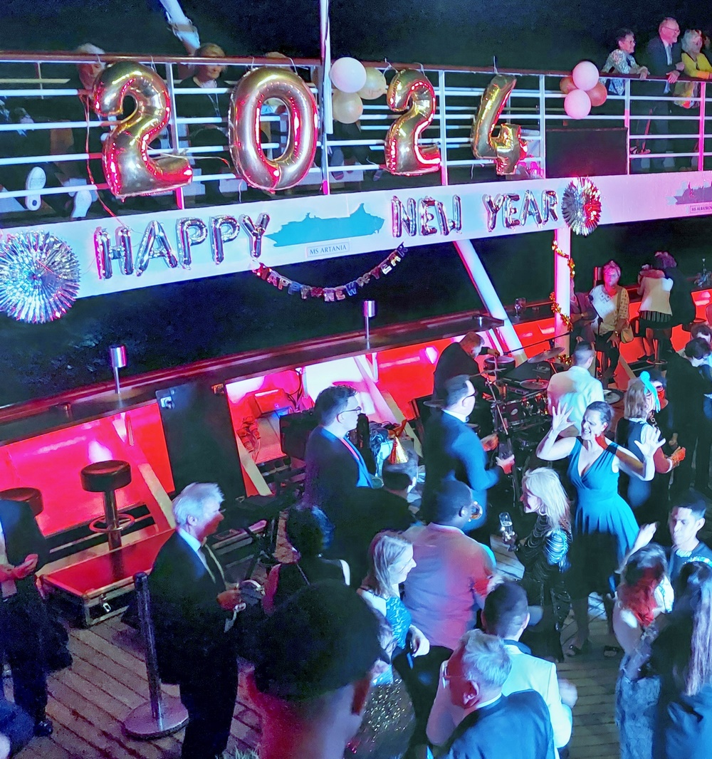 Kurz vor Mitternacht versammeln sich so ziemlich alle Gäste und die Teile Crew, die keinen Dienst hatten, hinten am Heck in der Phoenix Bar und den darüber liegenden offenen Decks.