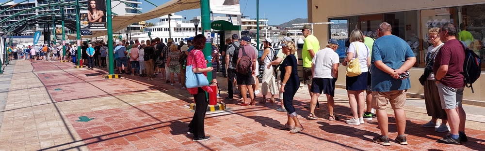 Beim letzten Tender um halb zwei, dem Lumpensammler, war die Schlange übersichtlich und wir kamen zurück zur ARTANIA, ohne dass wir uns vorher die Beine in den Bauch stehen mussten.