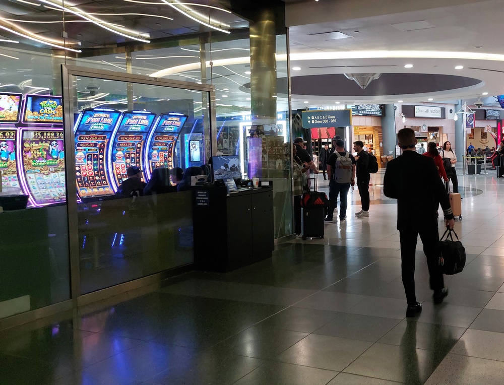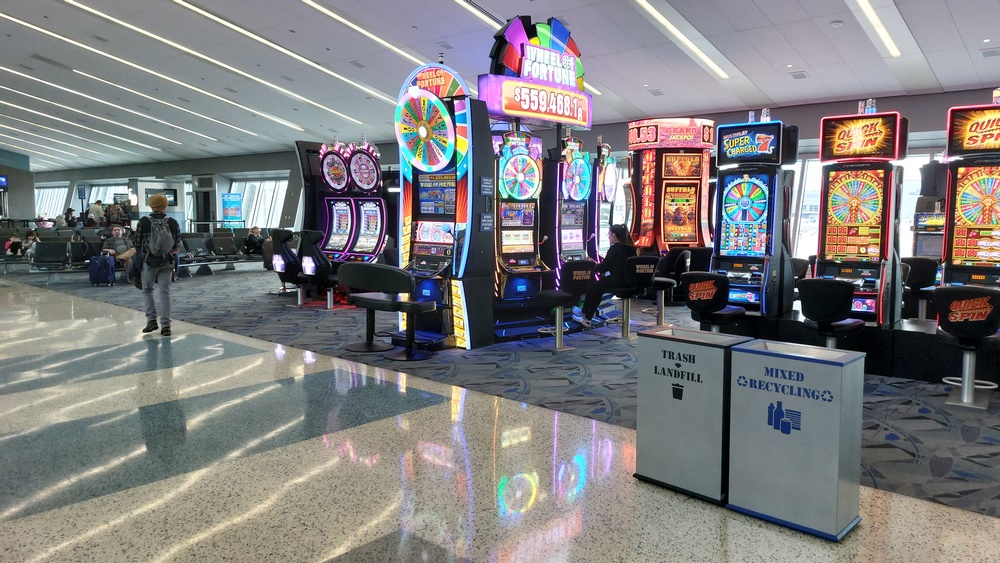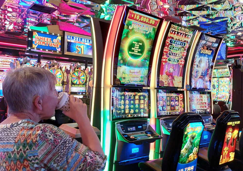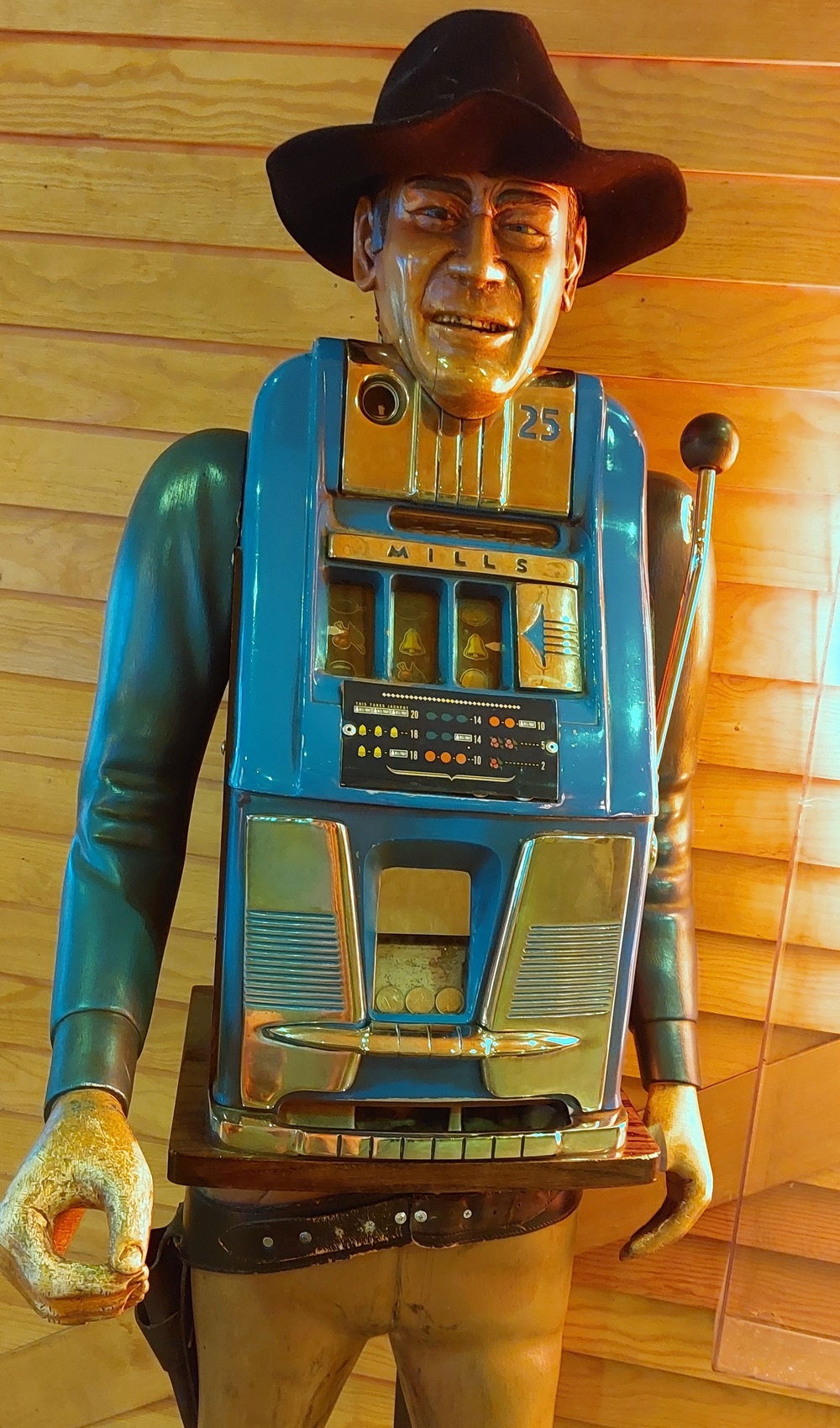 Unsere Vorstellung Zockern, die mit einem großen Kaffeebecher voller Quarter-Geldstücke vor den Automaten sitzen, mussten wir revidieren.