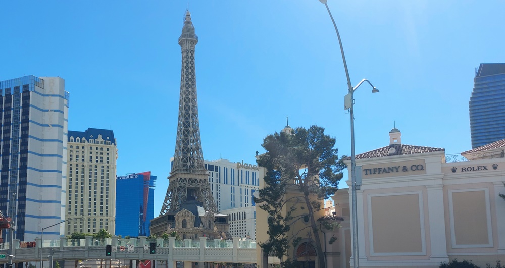 Beim Bummel über den Strip stößt man auf Nachbildungen von Paris, ...
