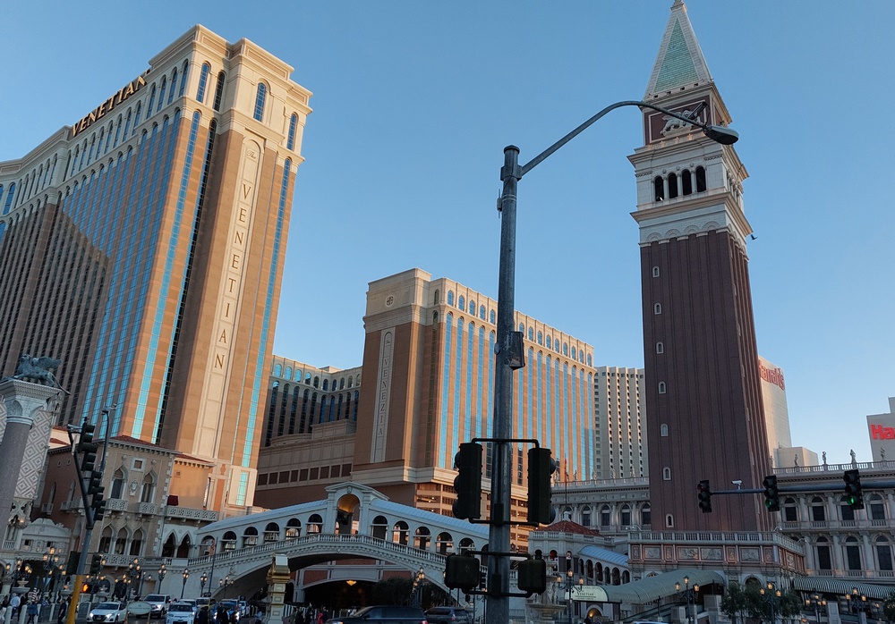 ... Venedig mit Campanile und einem Kanal, auf dem man Gondel fahren kann, um nur einige der kolossalen Hotel Resorts zu erwähnen.