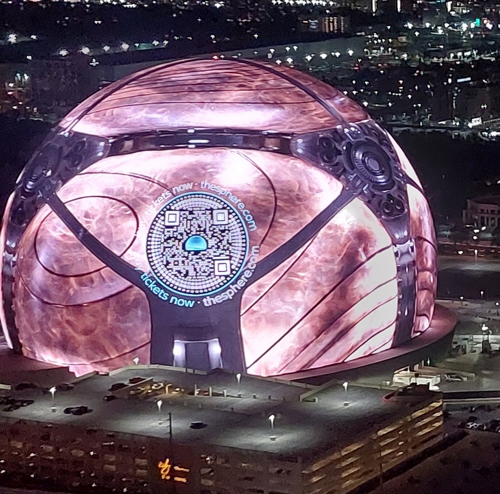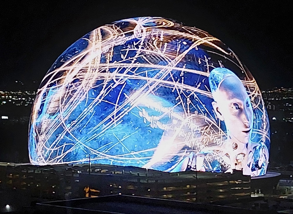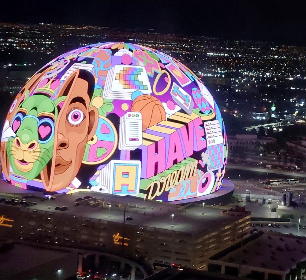 Da ist zuallererst das “Sphere“ zu nennen, das mit 157 Meter Durchmesser die größte kugelförmige Mehrzweckhalle der Welt ist. Von den 81.300 m² Außenfläche dienen 54.000 m² als überdimensionaler Bildschirm, bestückt mit 57,6 Mio. LEDs. Auf dieser Kugel werden Tag und Nacht Graphiken und bewegte Bilder erzeugt.