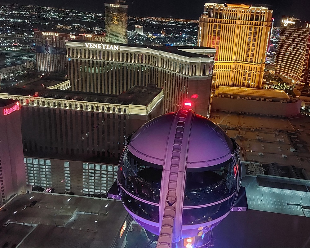 Statt zu Zocken fuhren wir also lieber mit dem Riesenrad “The High Roller“, das mit einer Höhe von 167 Metern nach dem “Ain Dubai“ das derzeit zweithöchste Riesenrad der Welt ist.