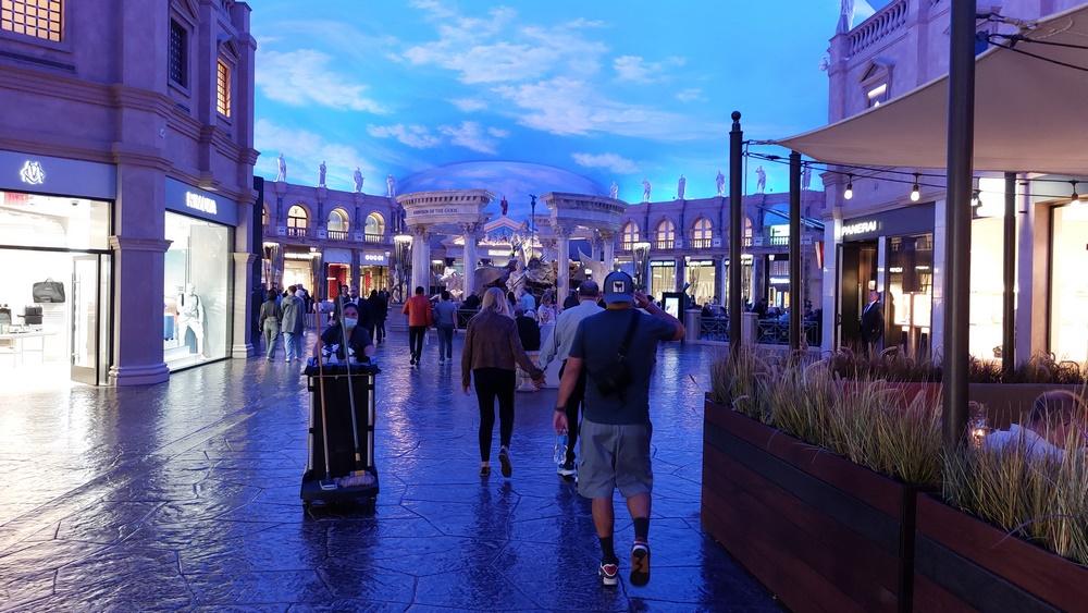 Irgendwann meinten wir, wieder nach draußen zu gelangen und bemerken relativ spät, dass wir einer Illusion erlegen waren. Der Himmel war ein bemaltes Deckengewölbe und durch die Lichteffekte wurde Tageslicht vorgetäuscht.
