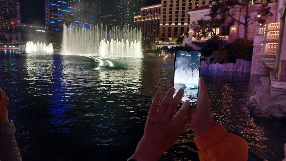 Wenn schon Bella Italia, dann doch auch noch schnell zu den Wasserspielen beim 5-Sterne Bellagio Hotel & Casino und anschließend zurück ins eigene Zwei-Sterne-Hotel.