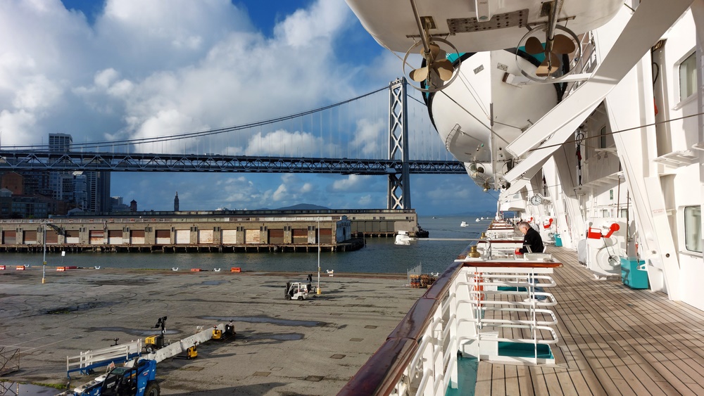 Um 15:30 Uhr hatten wir an der “Broadway Pier“ in San Diego festgemacht. Das Anlegemanöver und Ausfahren der Schiffeigenen Gangway zog sich etwas eine Stunde in die Länge, da ein anscheinend wichtiger amerikanischer „Anlegedirigent“ an der Pier hin und her laufend irgendwelche Anweisungen von sich gab, was zur Folge hatte, dass die ARTANIA kurz vor dem eigentlichen Festmachen in einer Art Schockstarre verharrte.