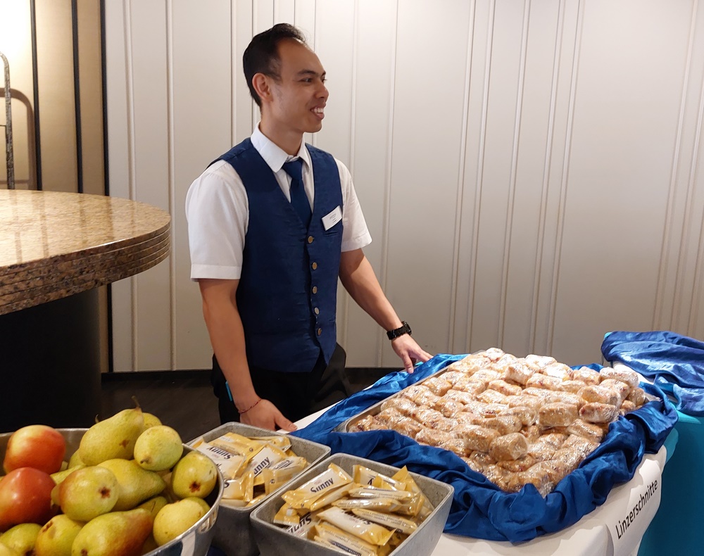 Jetzt hat Phoenix sich etwas sehr Sinnvolles einfallen lassen. Die Lunchbox wird nicht fix und fertig bestückt dem Gast übergeben, sondern jeder kann sie vor Antritt des Ausflugs an einer Art Buffet selbst bestücken.