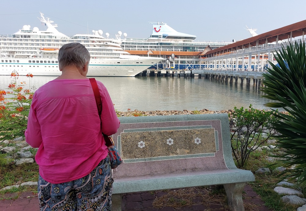 Zum Hafenausgang fährt ein Shuttlebus, aber dort gibt es außer wartenden Taxis auch nichts weiter. Somit fällt es leicht, den Tag zur notwendigen Schonung und Rekonvaleszenz zu nutzen.