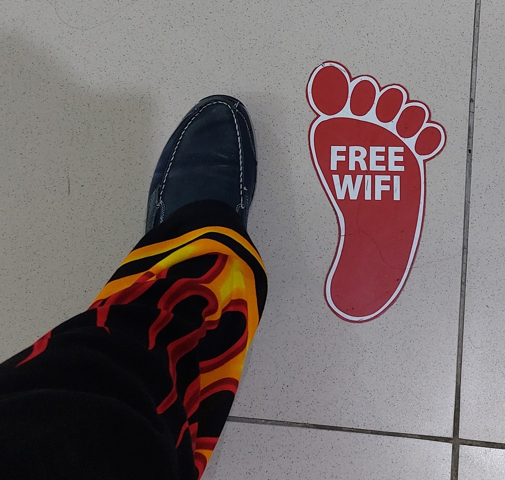 Im Terminalgebäude gab es freies WLAN (sehr wichtig für Crew und viele Passagiere) und ein paar Stände mit Klamotten und Andenken.