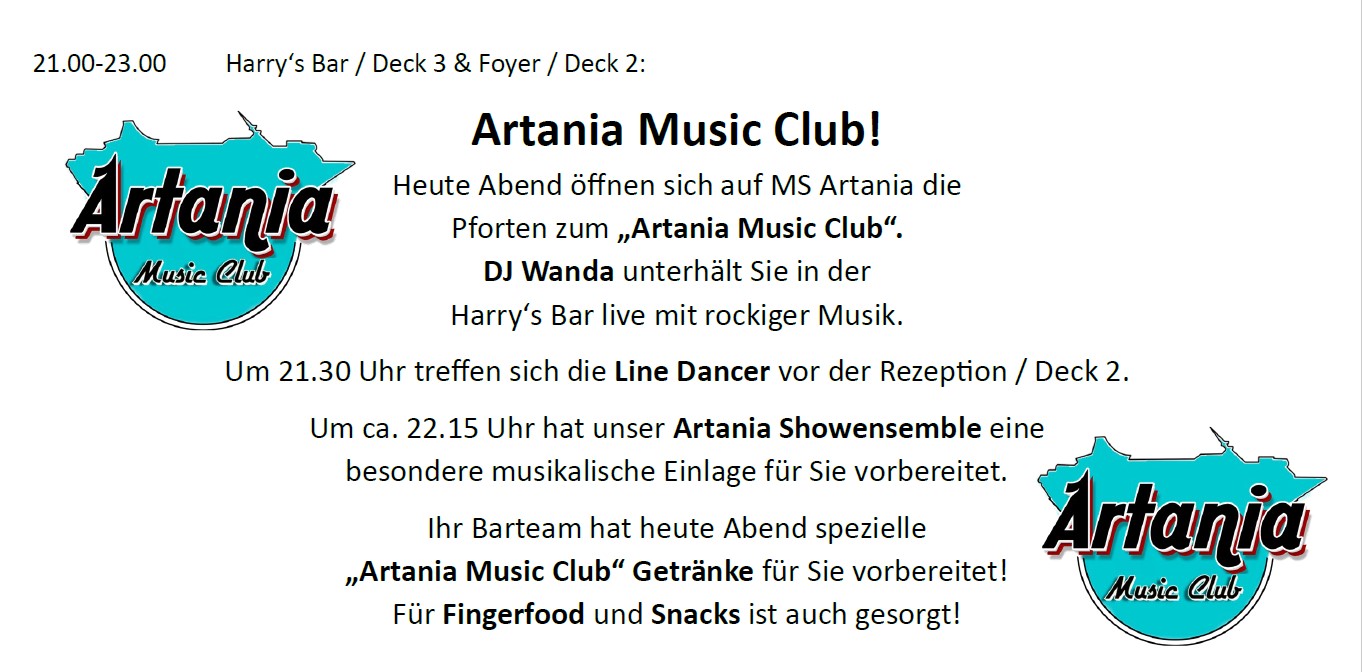 Da dieser „ARTANIA Music Club” mit Fingerfood und Snacks verbunden war, war um Punkt 21:00 Uhr Harry’s Bar gerammelt voll und es gab trotz zusätzlich aufgestellter Bierzeltgarnituren keine freien Plätze mehr.