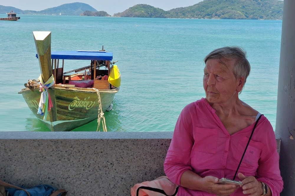 Von hier, der Kneipe, zum Viewpoint, dort eine halbe Stunde Aufenthalt und zurück bis zum Hafeneingang. Sie sprach von 300 Baht. Unser Währungsrechner zeigte, dass dies knapp 8 Dollar waren und wir sagten zu.