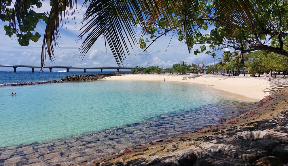 In der Nähe der Pier liegt ein großes, nobles Ressort, einige Restaurants und Strandbars.