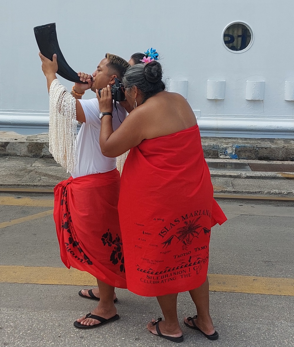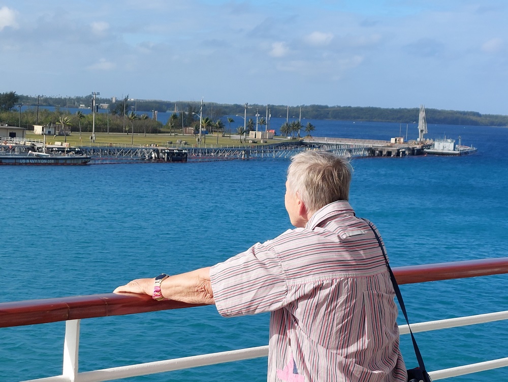 Für heute Vormittag stand zunächst wieder ein sogenannter Facecheck auf dem Programm. Da wir zwischen Hawaii (USA) und Guam (USA) am 19.2. noch Majuro (Republik Marshallinseln) angelaufen haben, reisten wir formell erneut in die USA ein und werden morgen, wenn wir in Saipan ablegen, wieder ausreisen. Das erfordert einiges an Formalitäten. Hierzu hat Phoenix dankenswerterweise das Ein- und Ausreiseformular bereits ausgefüllt.