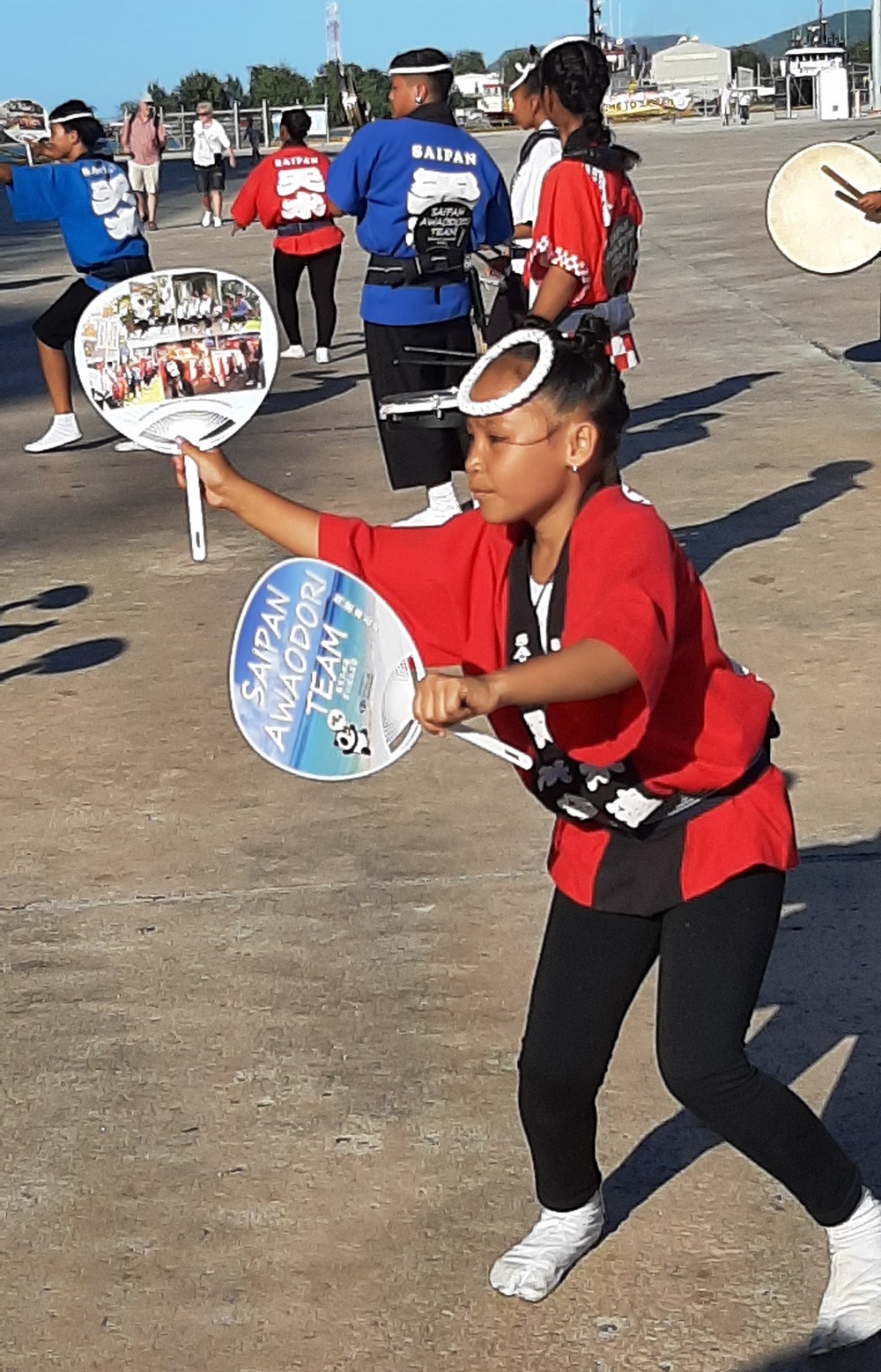 Eine Stunde vor dem Ablegen der ARTANIA, führte an der Pier eine Gruppe junger und ganz junger Tänzerinnen einen japanischen Tanz auf, den Awa Odori, rhythmisch begleitet von einer lautstarken Gruppe von Trommlerinnen und Trommlern.