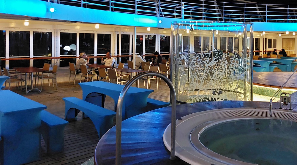 Am Abend fand wieder ein Grillabend in der Kopernikus-Bar statt. Es blieben jedoch sehr viele Plätze leer. Es ist sehr windig und damit zu ungemütlich, um im Freien zu sitzen.