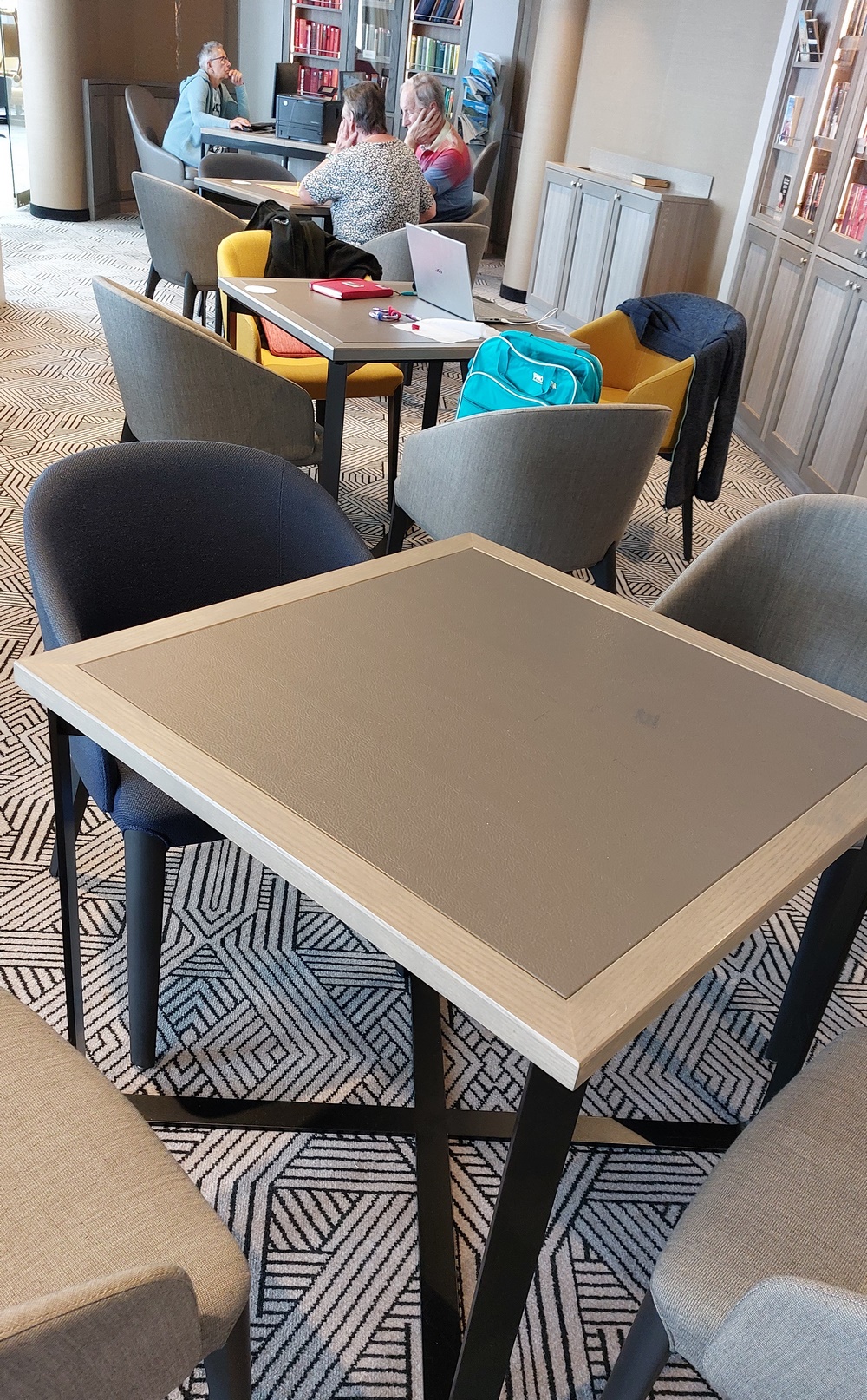 Beschwerten sich bisher Leute bei der Reiseleitung, dass sie wegen des Skatturniers keinen Platz in der Bibliothek fanden, wurde ihnen als Alternative die Bodega-Bar vorgeschlagen.