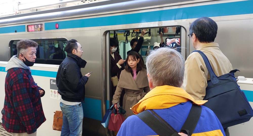Bis auf einem Sitz waren alle Plätze im Waggon besetzt und wir blieben beide stehen, da die Fahrt sowieso nur über drei Stationen gehen sollte.