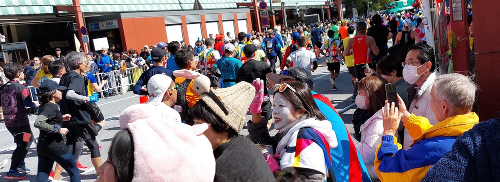 Nachdem über Lautsprecher das Erscheinen des höchstens Bergs von Japan verkündet wurde, ...