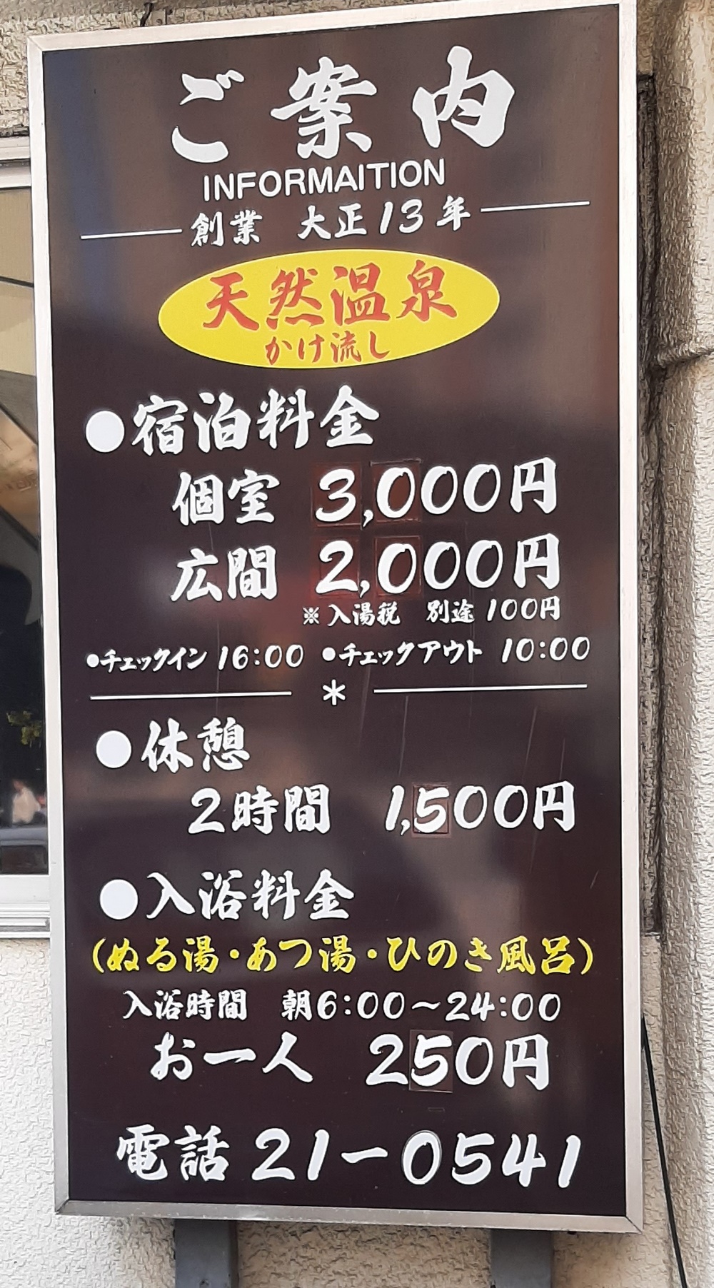 So wussten wir nun, dass der Eintritt 250 Yen (1,56€) pro Person kostet und was die Nutzung von Ruheräumen (Privatzimmer, Limousine, Kabinett) kosten würde.